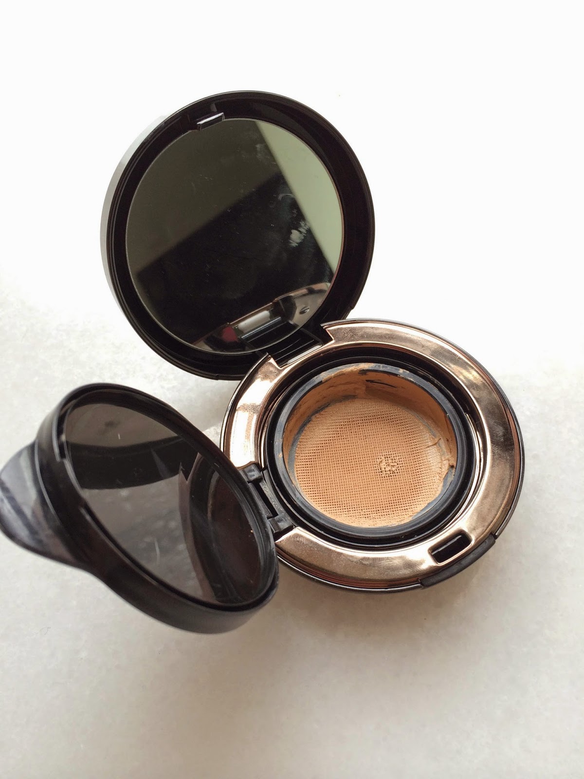 Suqqu是不用base的, 就直接用sponge拿來在臉上推開.  用creamy compact最怕的問題是會厚.  這個必須要留意自己小心按開.  可是用樣因為是creamy compact, coverage很好, 輕微的黑眼圈多按兩層就可以了.